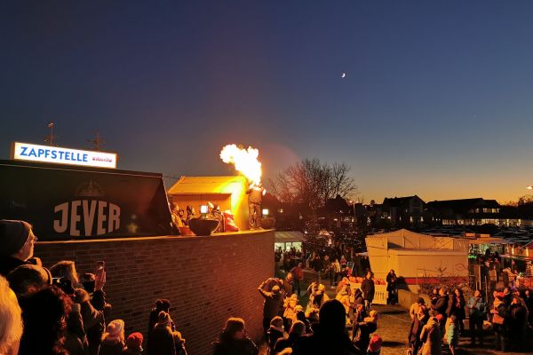 Die Zeit zwischen den Feiertagen lädt ein, zu langen Spaziergängen, ausgiebigen Teestunden und auf jeden Fall zu einem Besuch des Dangaster Winterzaubers. Hier kann man sich bei Apfelglühwein, Glühwein, Grog und Kinderpunsch wieder richtig aufwärmen. Und das vor der Kulisse des Wattenmeeres mit Blick auf´s Meer.